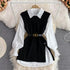 Élégant Ensemble Femme, Pull à Manches Longues & Gilet Tricoté Blanc, Style Deux-Pièces Ample