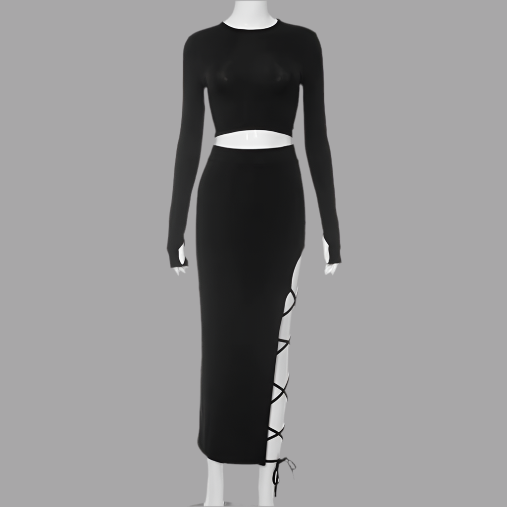 Ensemble Femme Automne Haut Court à Manches Longues & Jupe à Bretelles Taille Haute