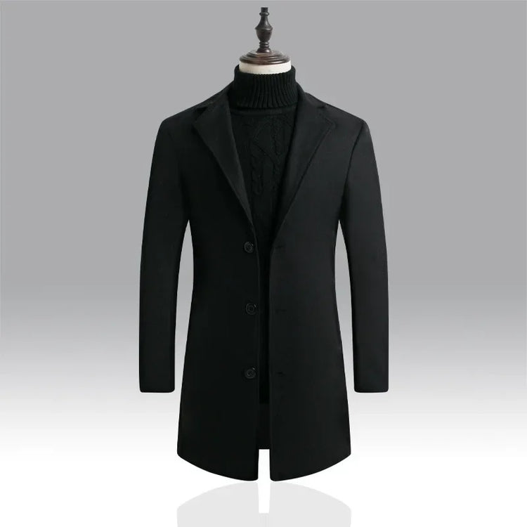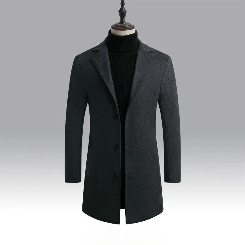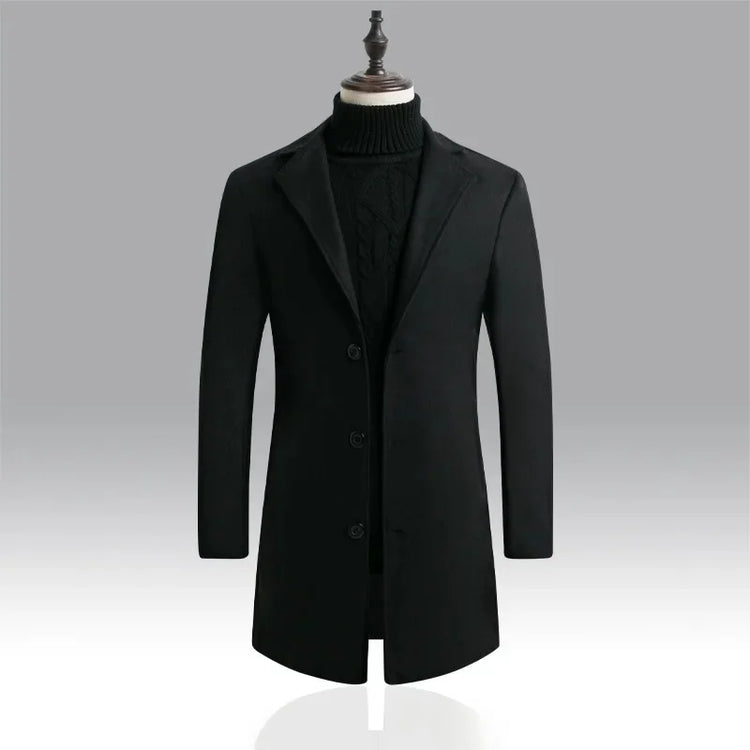 Manteau Homme Laine et Coton Épaissi – Slim Fit Mi-long Automne-Hiver