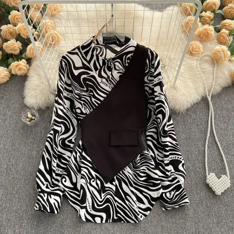 Apportez une touche moderne et raffinée à votre garde-robe avec cette chemise longue à manches longues au design unique. Son effet deux pièces avec empiècement rayé crée une illusion chic et tendance, parfaite pour un look décontracté mais travaillé.