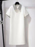 Robe Courte Femme Été Col Revers, Manches Courtes, Décor Perles