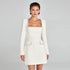 Robe Mini Élégante Femme Col Carré Clouté, Manches Longues