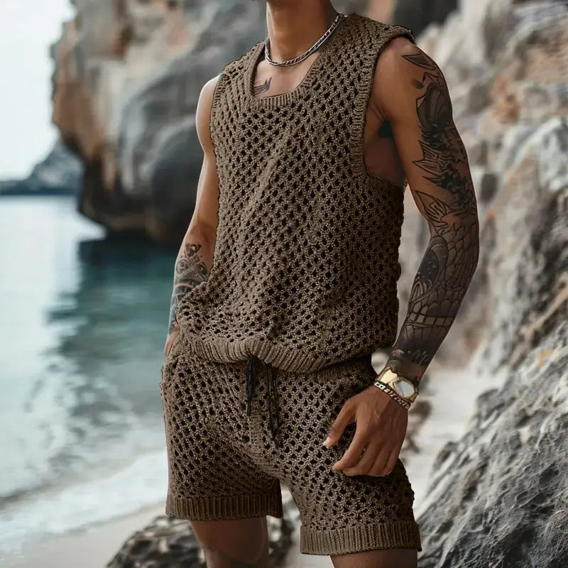 Ensemble d’Été Décontracté pour Homme Chemise et Short à Rayures Verticales