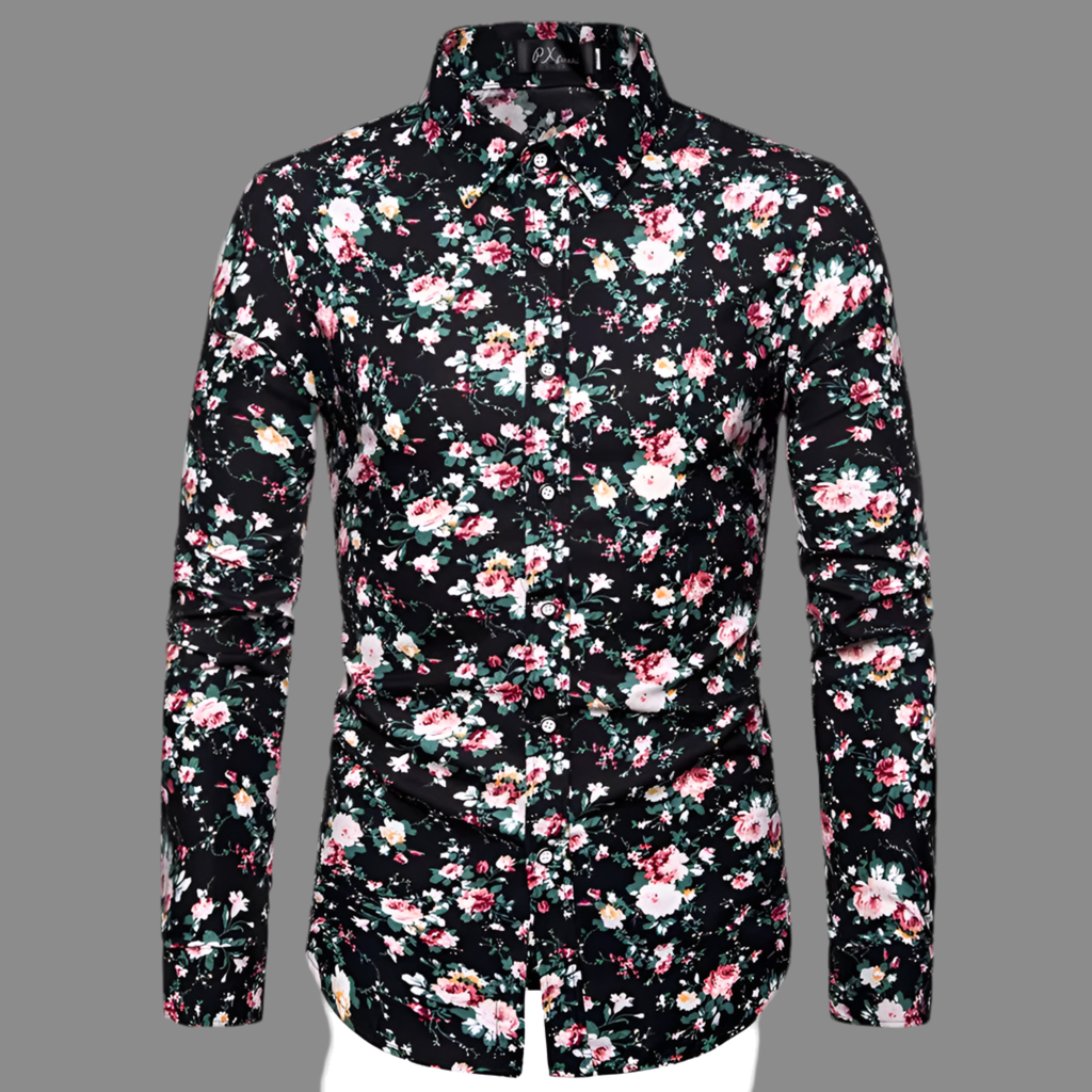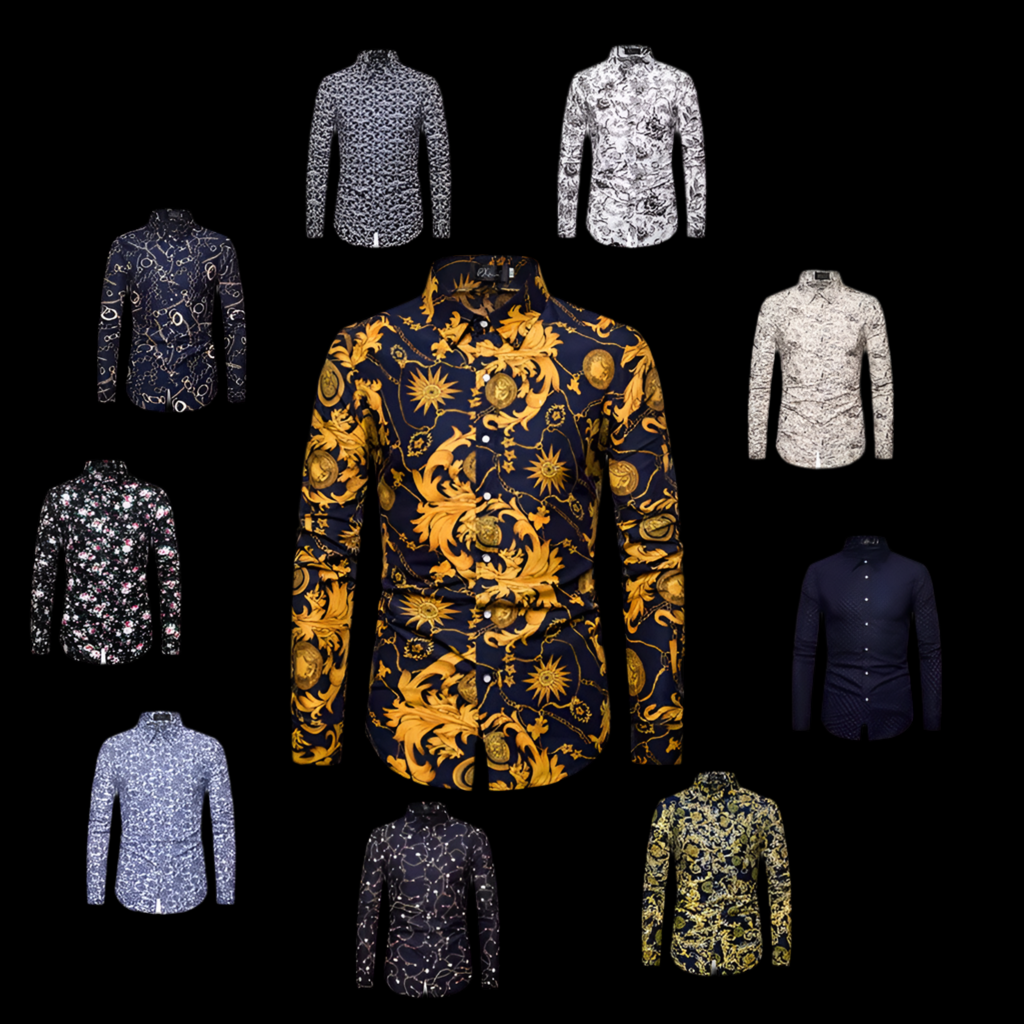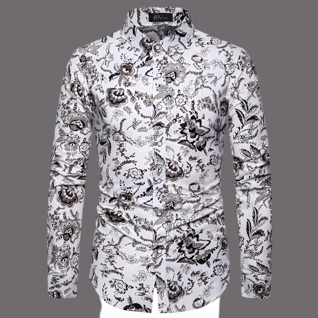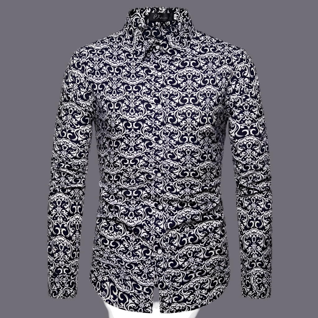 Chemise Homme Imprimée Élégante Manches Longues, Col Classique, Look Gentleman Décontracté/Formel