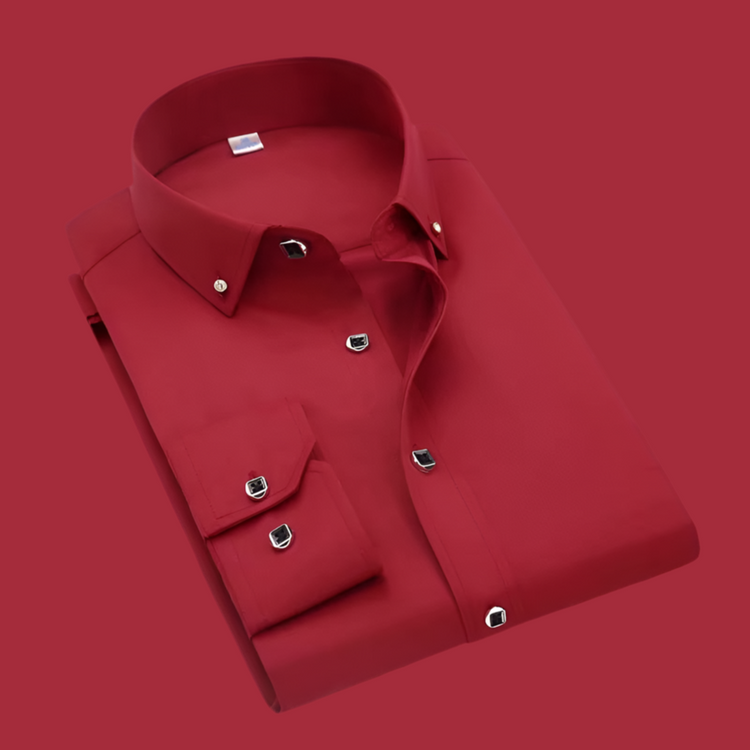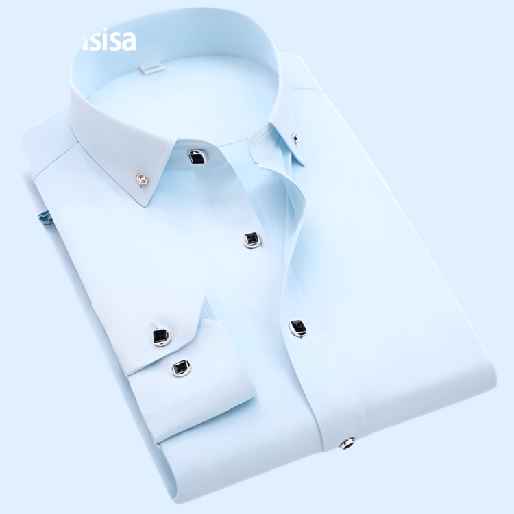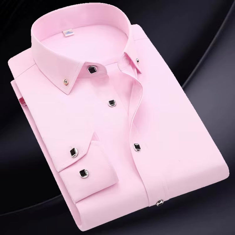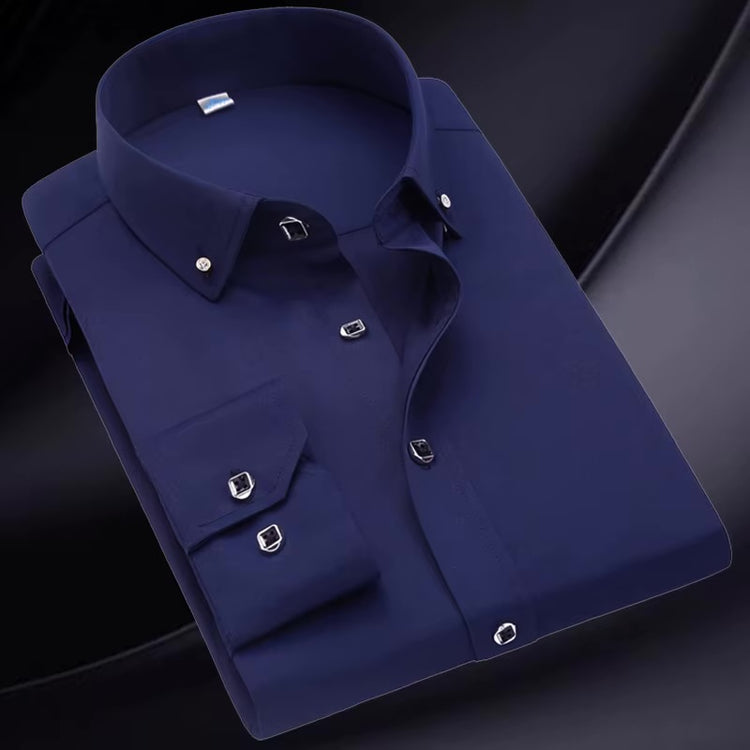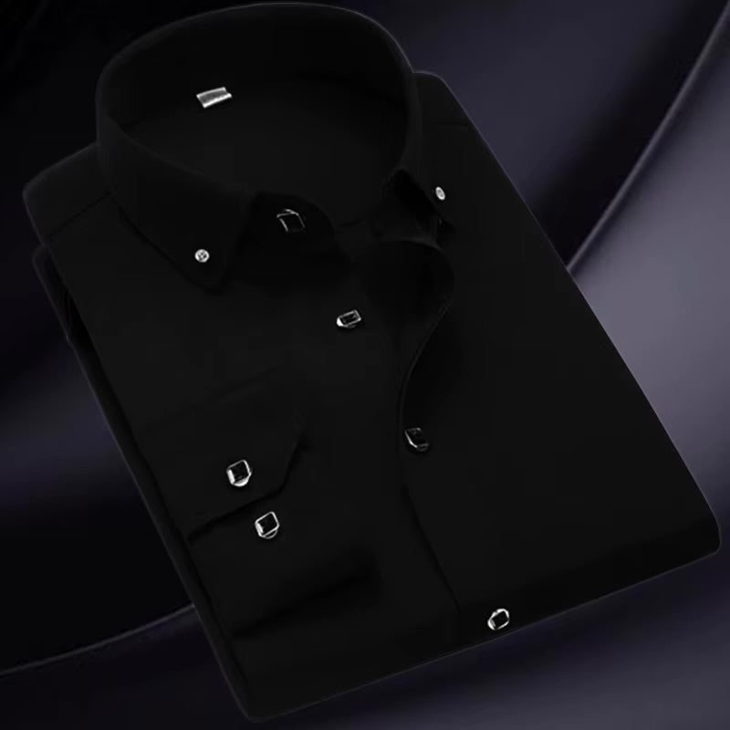 Chemise Homme Printemps Élégante Manches Longues, Boutons Diamantés, Coupe Professionnelle Unicolore